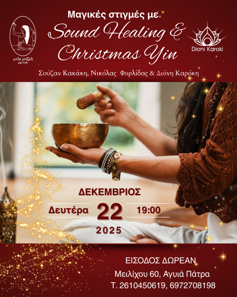 Η βραδιά ξεκινά με Christmas Yin Asanas από τη Σούζαν Κακάκη. Ήπιες, στατικές στάσεις που βοηθούν το σώμα να ξεκουραστεί, το νευρικό σύστημα να ηρεμήσει και την καρδιά να ανοίξει, δημιουργώντας χώρο για πρόθεση και εσωτερική γαλήνη.